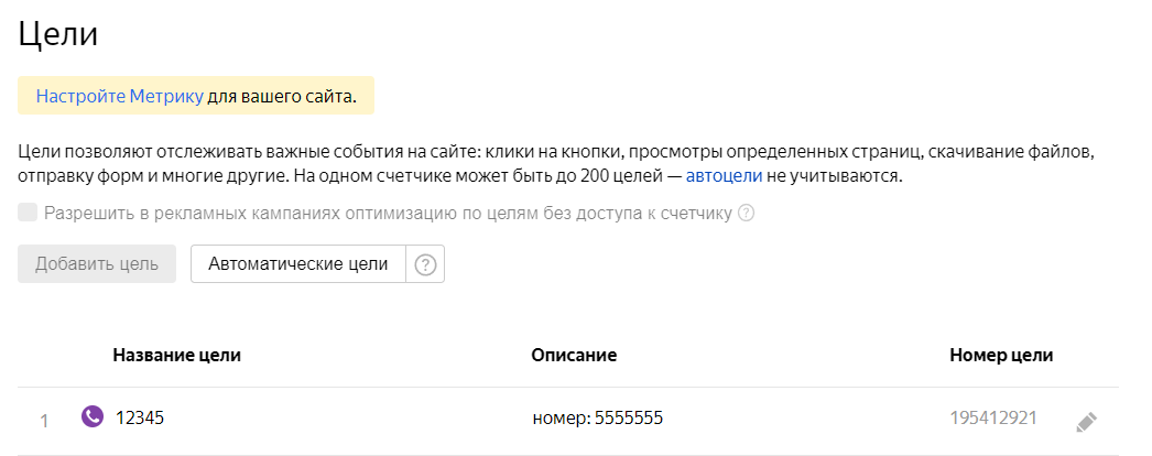 Когда любая цель Яндекс Метрики указана в настройках кампании Яндекс Директа как условие ретаргетинга и подбора аудитории, в интерфейсе Яндекс Метрики она отображается в разделе Цели.