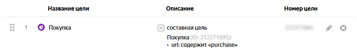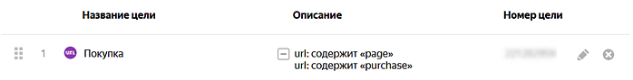 - URL целевой страницы в условии цели «Покупка» содержал фрагмент