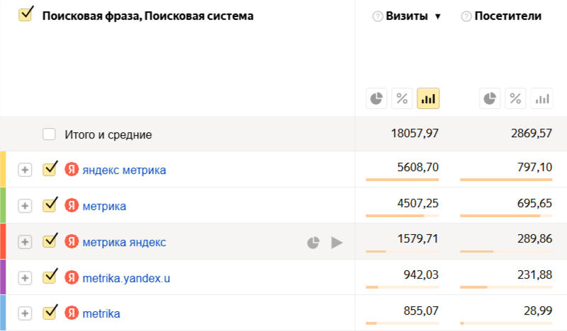 Чтобы проанализировать результат более детально, нажмем на строку Переходы из поисковых систем. Откроется отчет, сформированный по созданному сегменту.