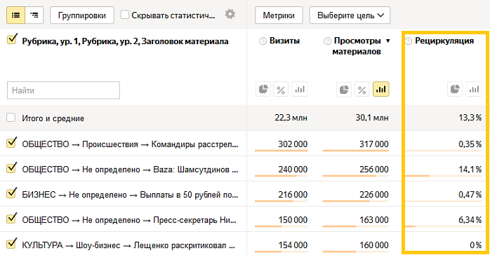 При анализе данных нужно обратить внимание на метрику «Рециркуляция».