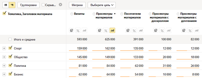 Отчет содержит статистику по тематикам материалов вашего сайта.