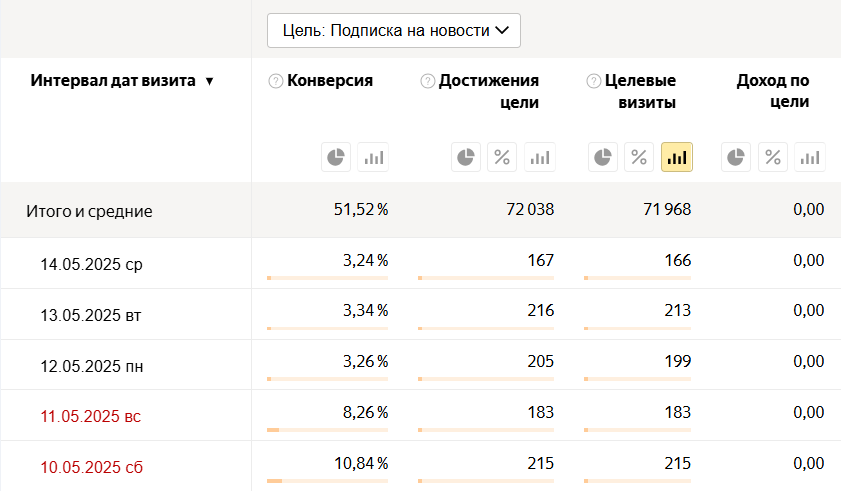 Узнать количество посетителей, которые достигли цель
