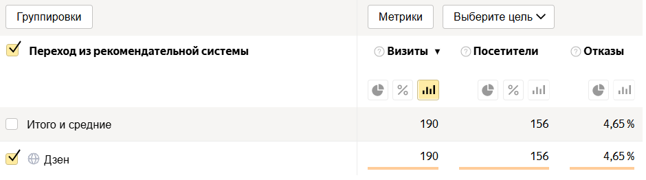 Отчет содержит информацию о переходах посетителей на ваш сайт из рекомендательных систем (ленты новостей, тематических статей и т. д.).