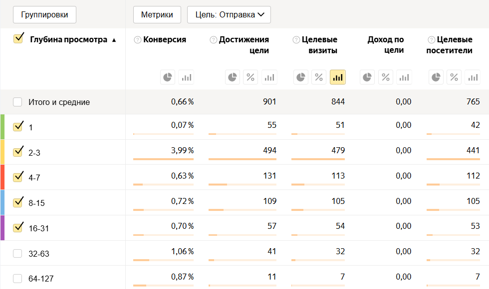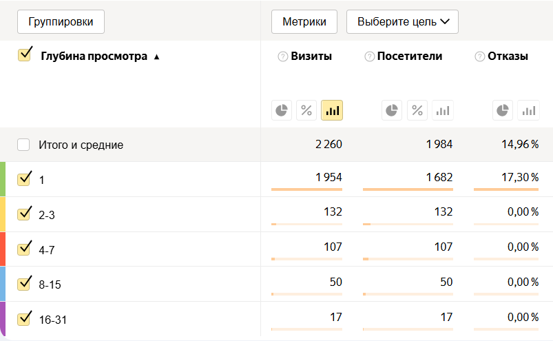 Отчет покажет, сколько страниц просматривают посетители в течение визита.