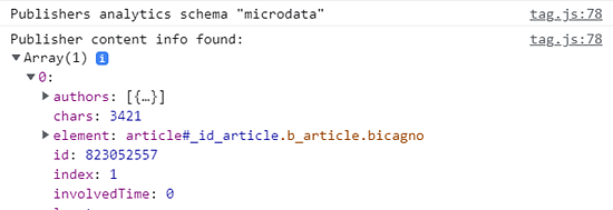 Sayaç kontrolü sırasında tarayıcı konsolunda aşağıdakiler gibi bir dizi veri görüntülenebilir: