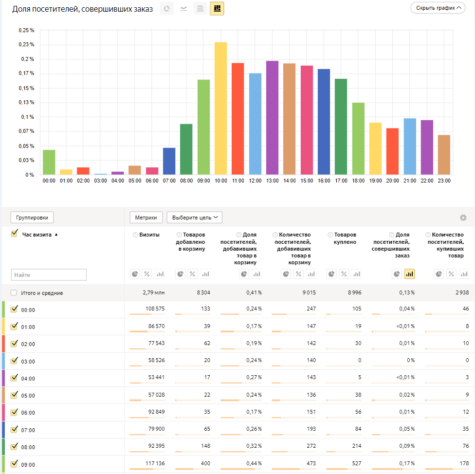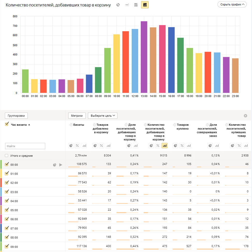 Rapor, Yandex Metrica'da kullanılabilen tüm ayarları destekler.