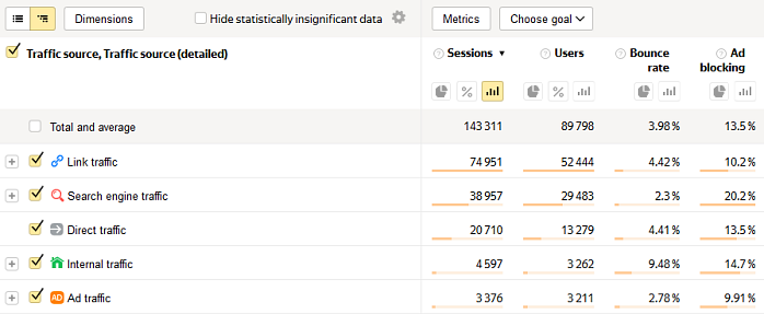 - Yandex Metrica → Teknolojiler → Reklam engelleyiciler.