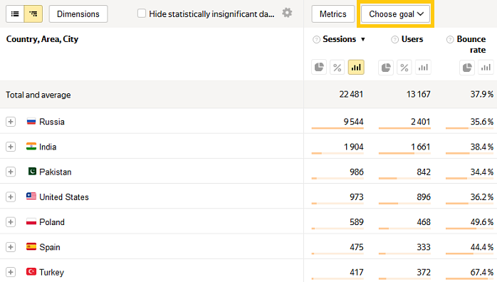 Rapor, Yandex Metrica'da kullanılabilen tüm ayarları destekler.