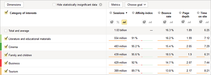 Yandex Metrica'da site ziyaretçi kitlesinin uzun vadeli ilgi alanlarını gösteren yeni ve daha ayrıntılı bir rapor kullanıma sunulduğu için eski sürüm raporda veri güncelleme askıya alınmıştır.