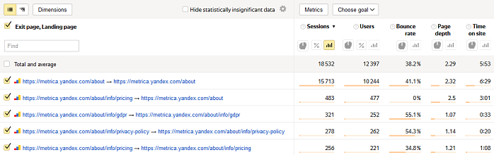 例如,用户在网站首页开始会话,在联系信息页面结束会话 —— 这是预期行为。 但是,如果用户会话在主页上开始并很快结束,则可能的结论可能是用户没有找到他们正在查找的信息。