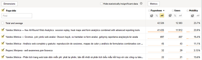 此报表的示例可用于 Yandex Metrica 演示计数器。
