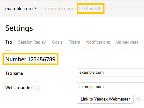 - Find the name of the desired tag in the list. The tag number is specified next to the site URL.