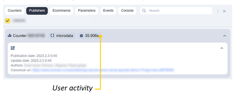 If the markup is set up correctly, the type of markup and information about the marked-up material will be displayed in the section on the Publishers tab. Detailed data is available in the Console tab.