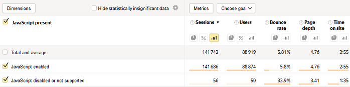该报表显示用户是否启用了 JavaScript (ECMAScript)。 如果访问网站的用户启用了 JavaScript,网站所有者可以向他们显示各种启用了 JavaScript 的脚本。