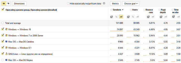 此报表包含有关您的受众所使用的操作系统及其版本的统计。