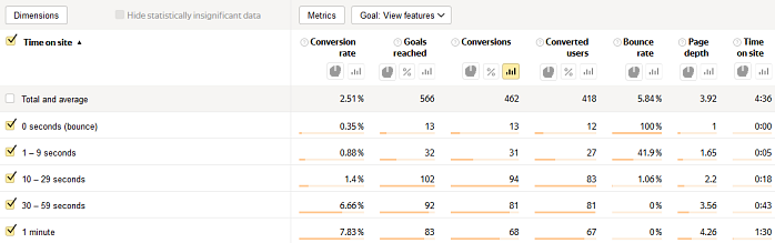 该报表包含用户在网站上花费时间的相关信息。 您可以使用它来确定网站受众的兴趣程度。