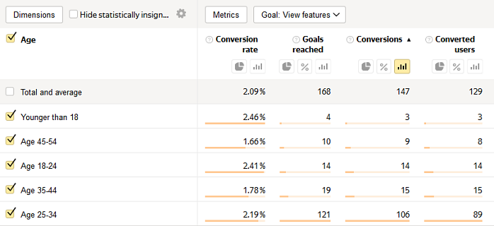 此报表的示例可用于 Yandex Metrica 演示计数器。