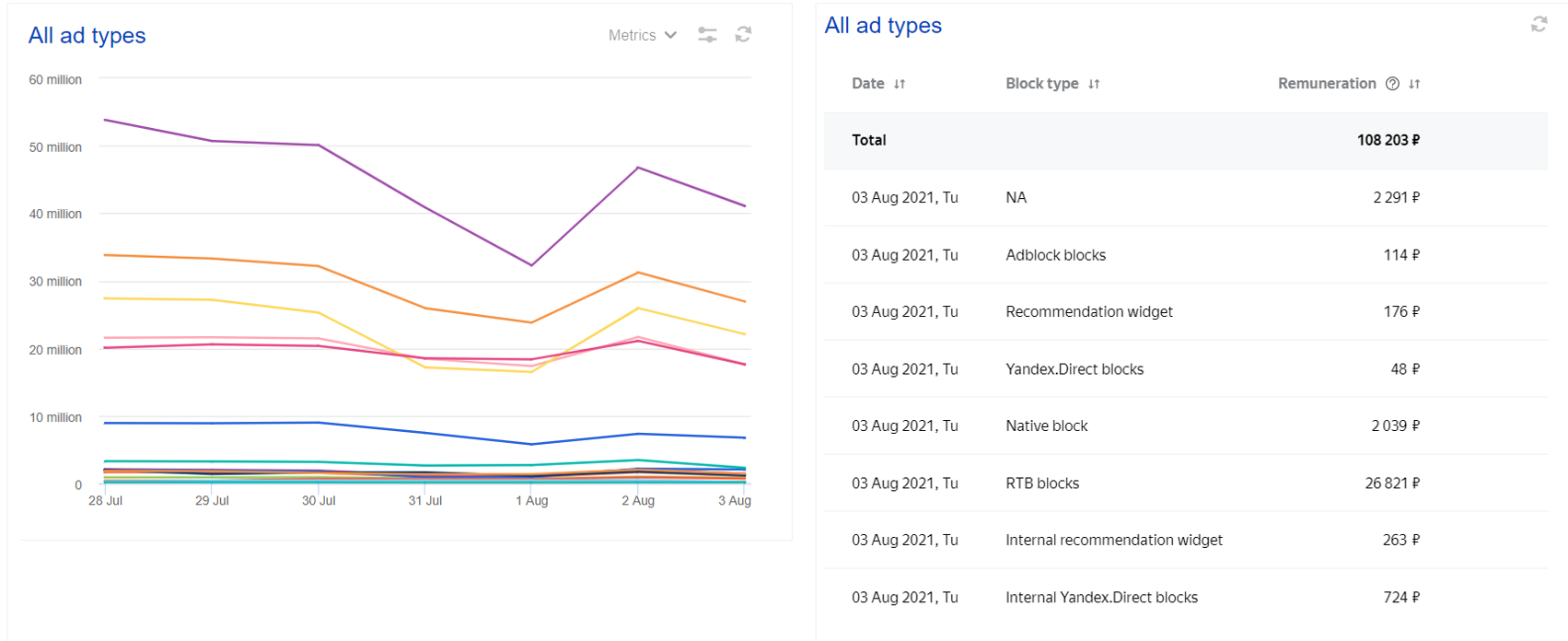 You can add a widget on the Statistics(https://partner.yandex.com/v2/statistics/reports/) tab or from the dashboard page (to do this, click Create statistical widget). In the window that opens: