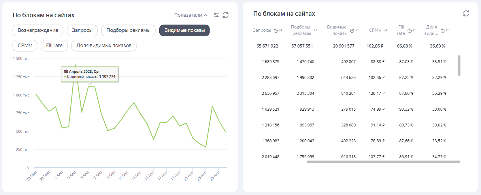 При обнаружении недействительных показов суммы в виджете могут изменяться.