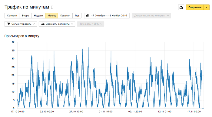 С его помощью можно определить общую динамику пользовательского трафика на сайте и, понимая зависимость «трафик — доход», прогнозировать уровень дохода вашего сайта.