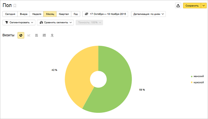 Отчеты блока Демография позволят вам оценить распределение по полу и возрасту.