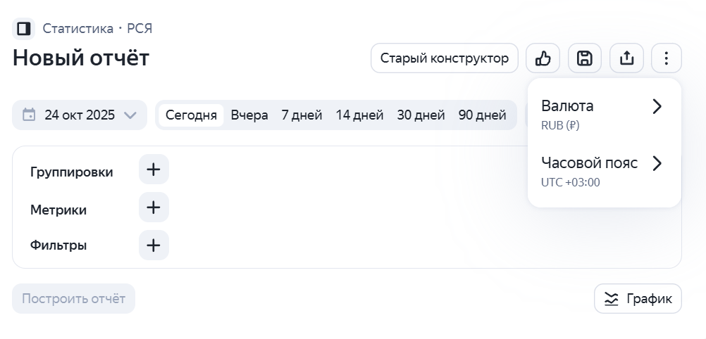 Чтобы перейти к старому интерфейсу, на любой странице раздела Статистика в правом верхнем углу нажмите кнопку Старый конструктор отчётов.