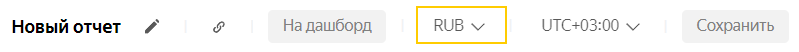 По умолчанию все финансовые показатели отображаются в рублях. При необходимости измените валюту отчета в верхней части экрана в выпадающем списке: