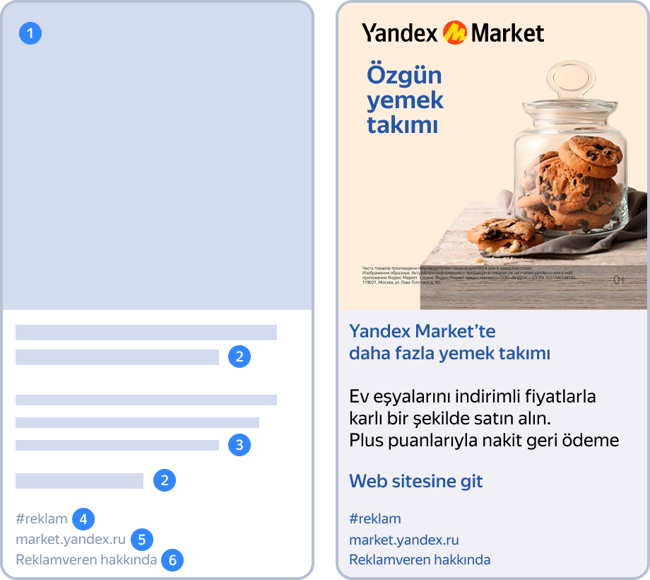 Reklamların otomatik işaretlenmesi. Reklamda bir "Reklam" etiketi ve bağlantıda özel bir belirteç bulunur. Rusya Federasyonu’nda ikamet eden iş ortakları için, reklam verileri Yandex Reklam Verileri Operatörü aracılığıyla otomatik olarak Rusya Federasyonu İnternet Reklamları Birleşik Sicili'ne aktarılır.
