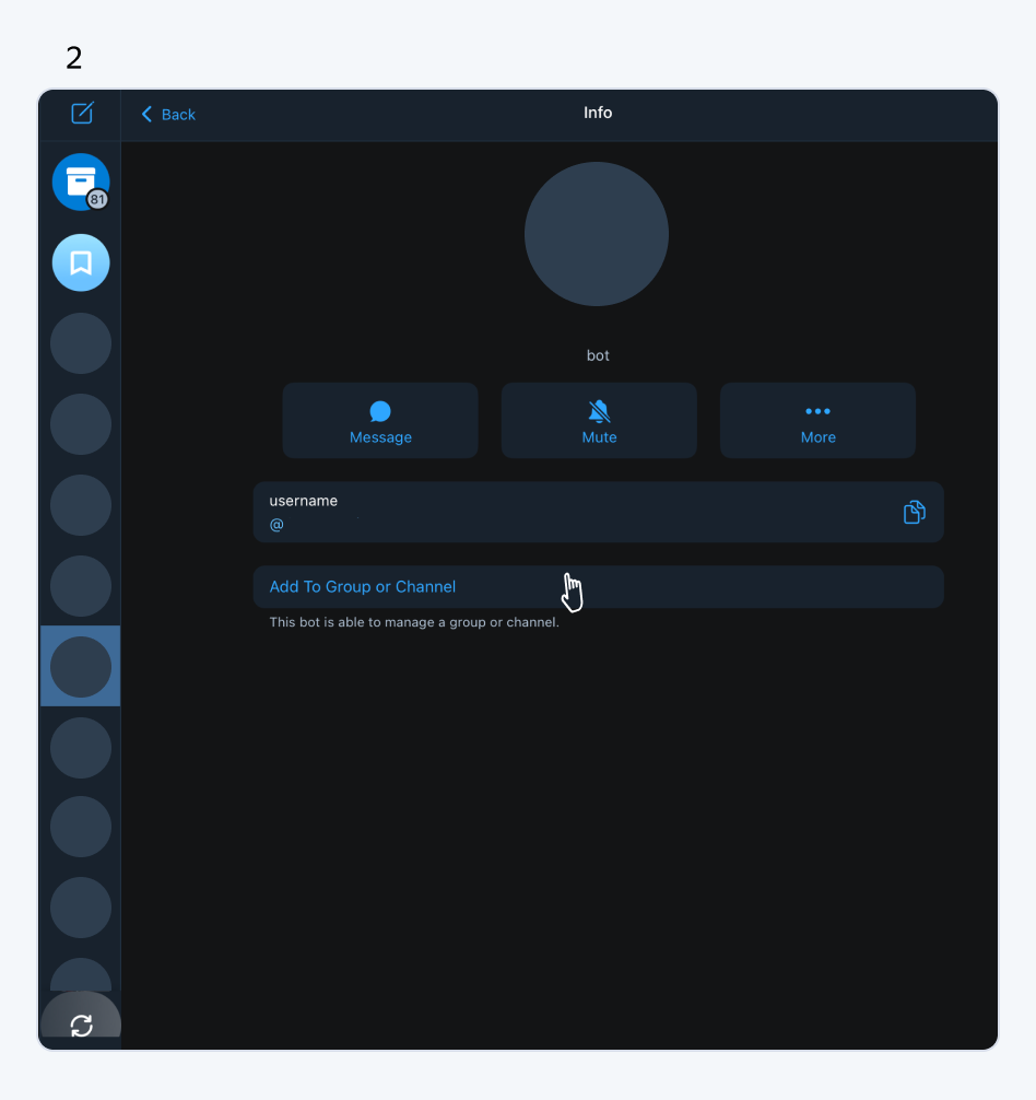 - Telegram arayüzünde, reklamları yayınlayan bota abone ekleme yetkisi verin (davet bağlantıları oluşturma).