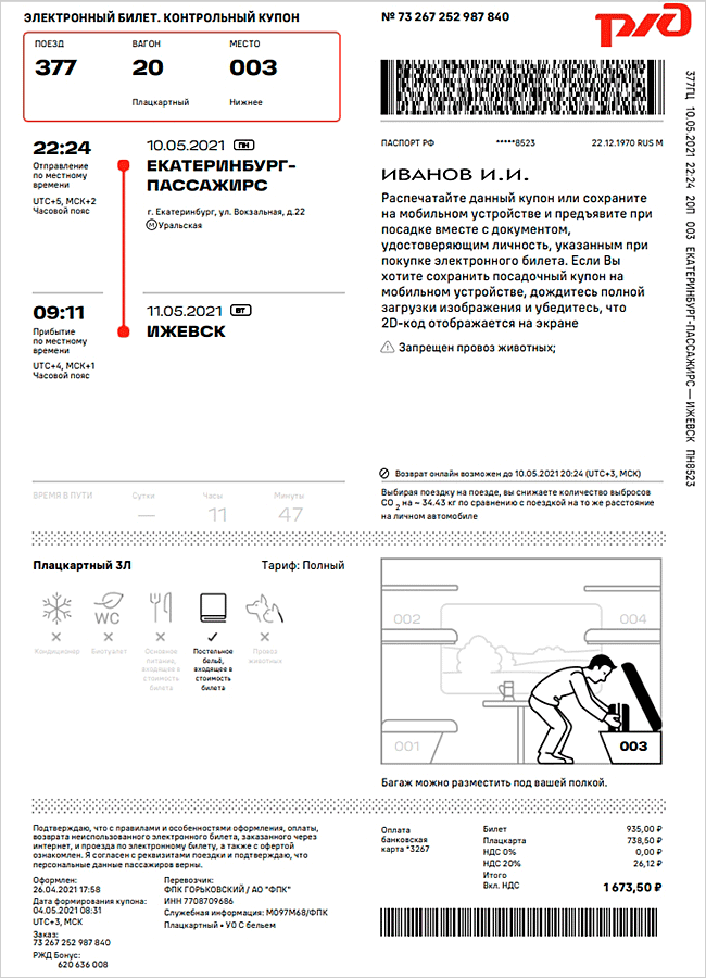• РЖД Бонус — бонусы будут зачислены на вашу карту после поездки.