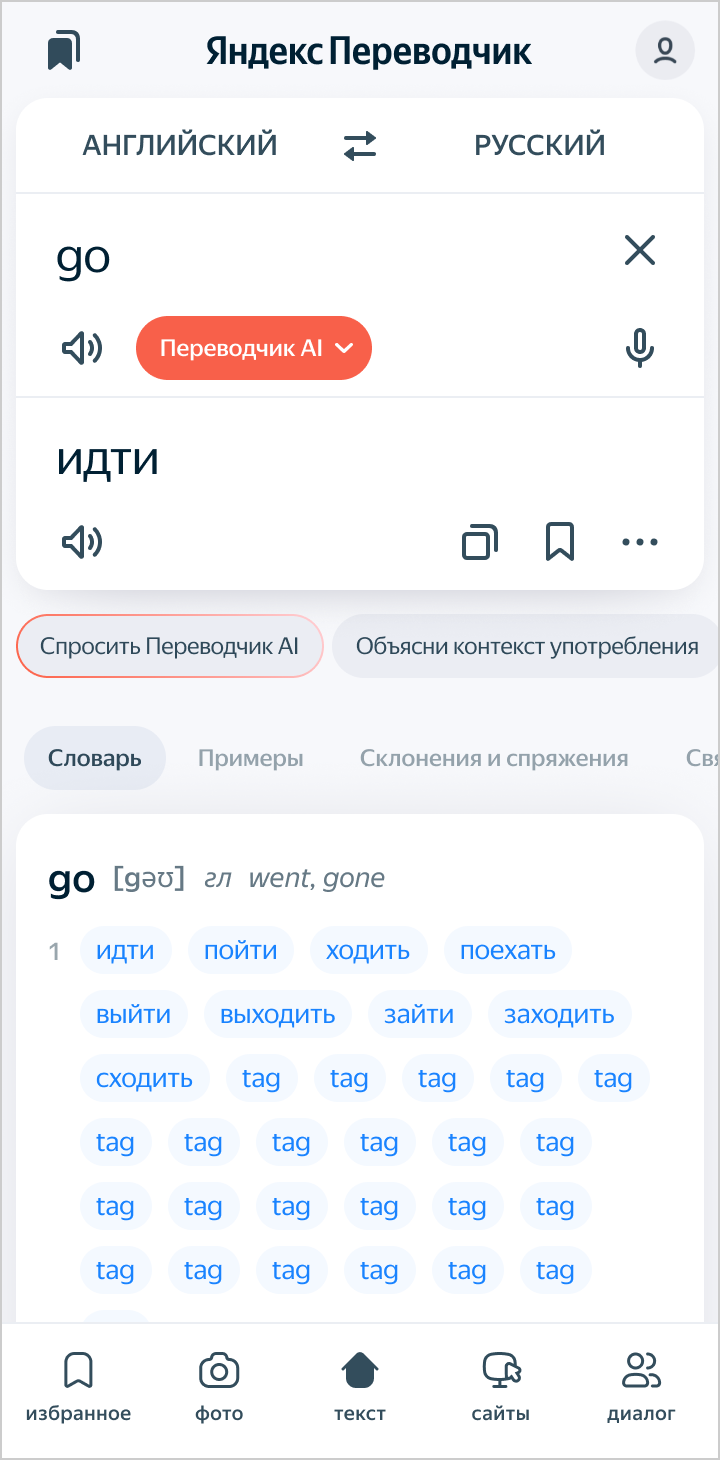 Tezkor tarjima kundalik vazifalar uchun asosiy model hisoblanadi. Qisqa iboralar va oddiy matnlar uchun mos keladi.