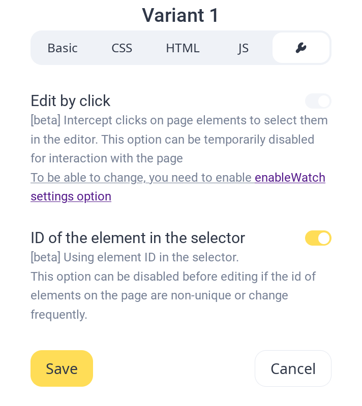 We recommend a different solution: add a redirect to the control variant. Create a copy of the original page and specify the link to it in the control variant.