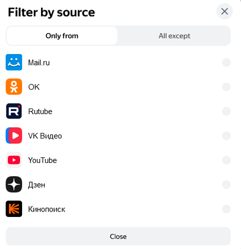 Family mode: Adult video content (18+) is completely excluded from search results (even if the query is explicitly aimed at finding such resources). The mode stays enabled even if you reopen the video search tab.