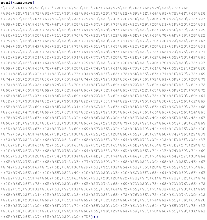 Example of malicious code that is issued the verdict Troj/JSRedir-DC: