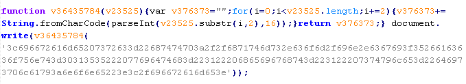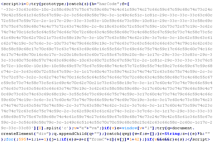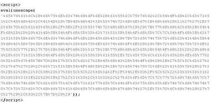 Example of malicious code that is issued the verdict Troj/JSRedir-HZ: