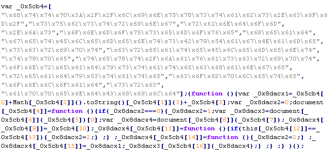 Example of malicious code that is issued the verdict Troj/JSRedir-MX: