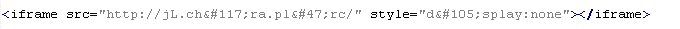 Example of malicious code that is issued the verdict Troj/JSRedir-HA: