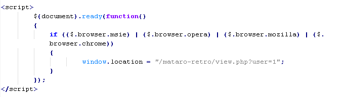 This verdict means that the page contains JavaScript code that, when executed, redirects the user to a site distributing malware. The code contains a URI (Universal Resource Identifier) in the src attribute, usually ending with jquery.min.php.