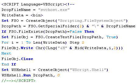 This verdict means that the page contains VBScript code that, if successfully executed, creates and runs an executable file on the user’s computer.