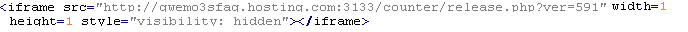 This verdict means that the page contains an <iframe> tag with the width and height attributes set to values from 0 to 2, or JavaScript code that, when executed, adds this tag to the page. The src attribute of the tag contains a domain name that malware is distributed from. The tag contains additional attributes: frameborder=0, style="VISIBILITY:hidden", style="display:none".