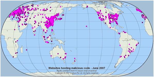 Son yıllarda, web sunucularına yönelik saldırıların sayısı önemli ölçüde artmıştır. Aşağıdaki haritada gösterildiği gibi, sunucunun coğrafi konumu önemli değildir: kötü amaçlı kod sınır tanımaz. Uluslararası tehdit, artık sadece genç bilgisayar korsanı holiganları değil, parolalar, finansal bilgiler ve diğer verilerin kitlesel olarak toplanmasıyla uğraşan organize suç topluluklarından gelmektedir. Çoğu durumda, saldırı minimum müdahale ile gerçekleşir ve sunucularda ve sitelerde barındırılan kötü amaçlı yazılım, maksimum sayıda kullanıcıya virüs bulaştırmayı amaçlar.
