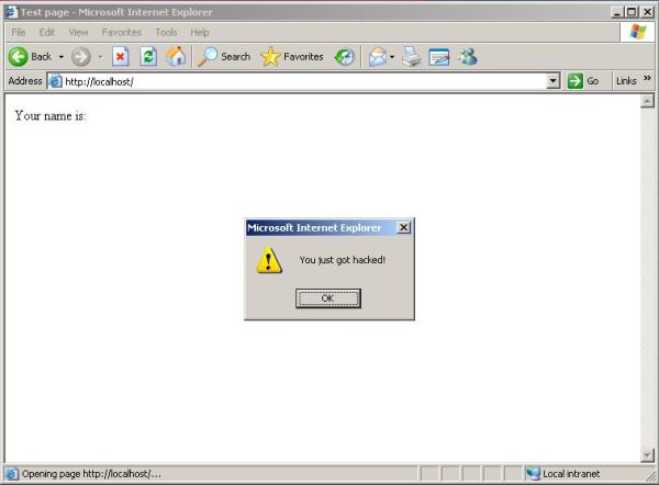 Peki ya bir ad yerine şu girilirse: «<script>alert («Siber saldırıya uğradınız!») ;</script>»?