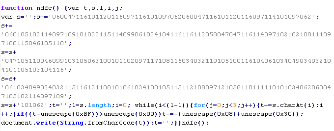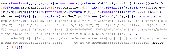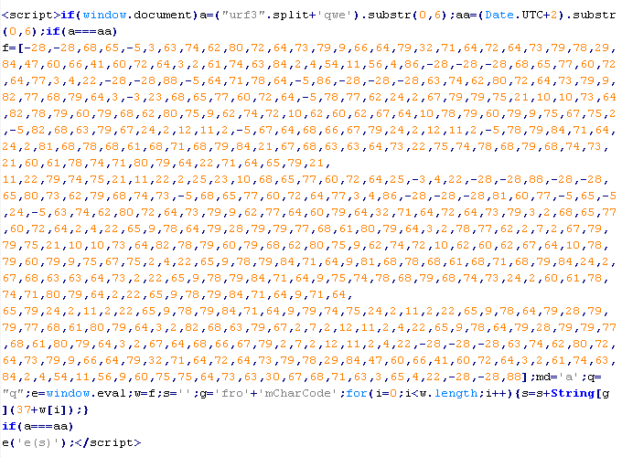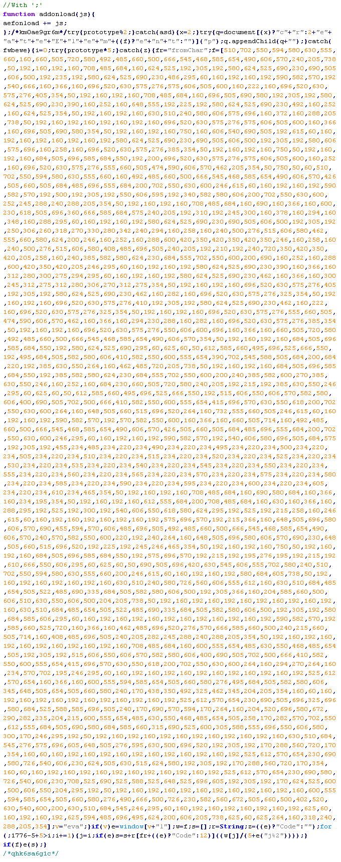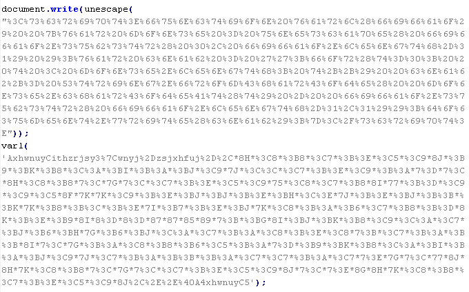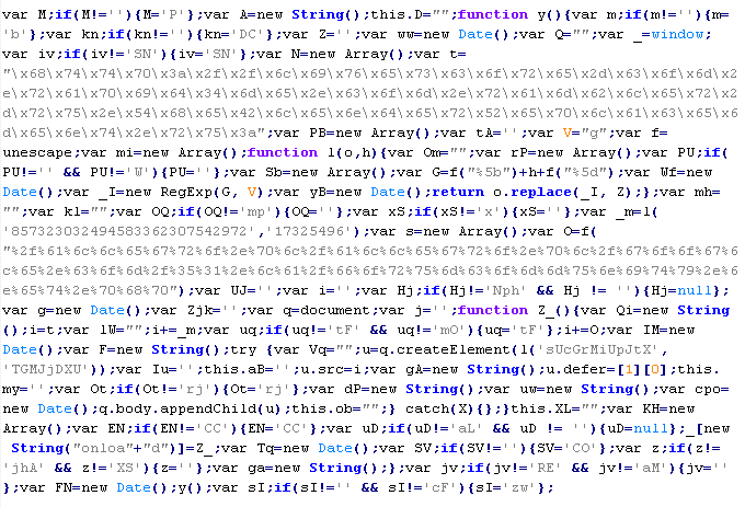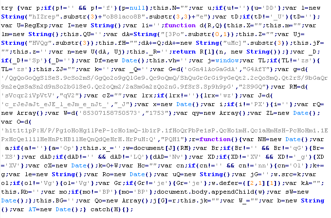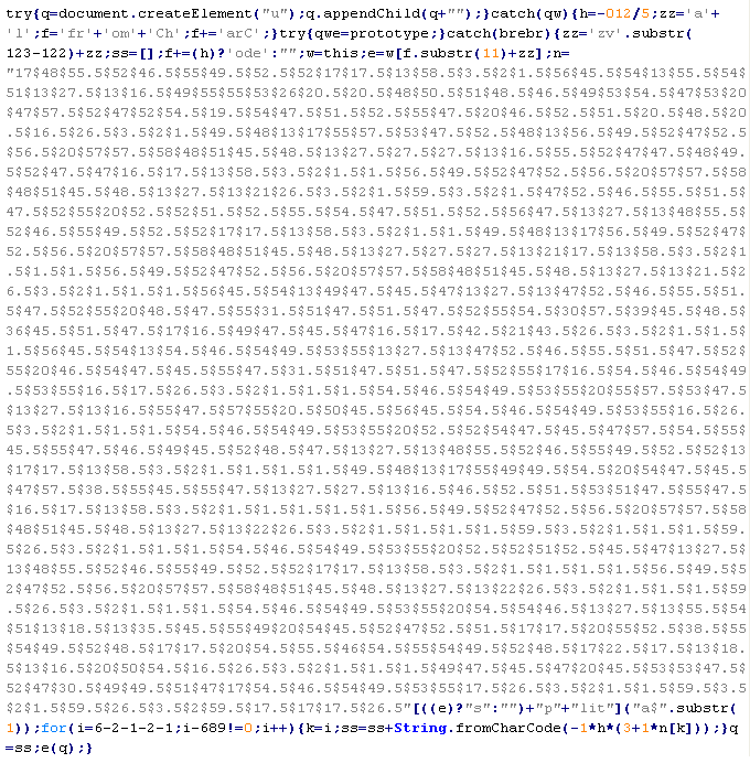 Troj/ObfJS-O kararı verilen kötü amaçlı kod örneği: