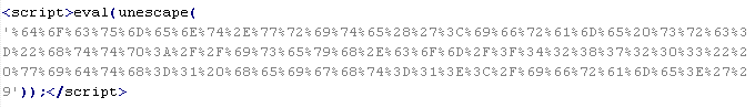 Troj/JSRedir-DL kararının verilmesine yol açan kötü amaçlı kod örneği: