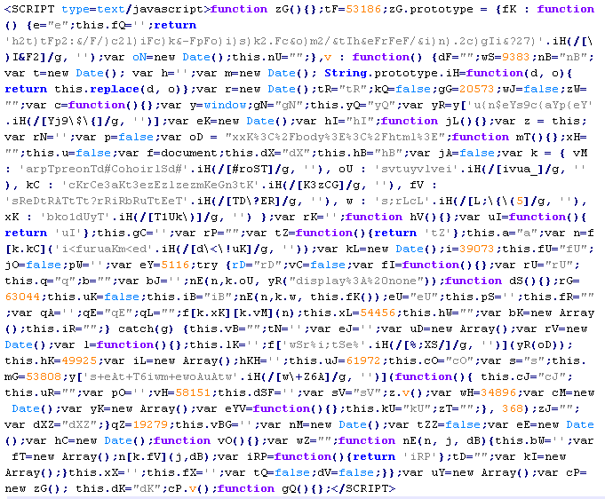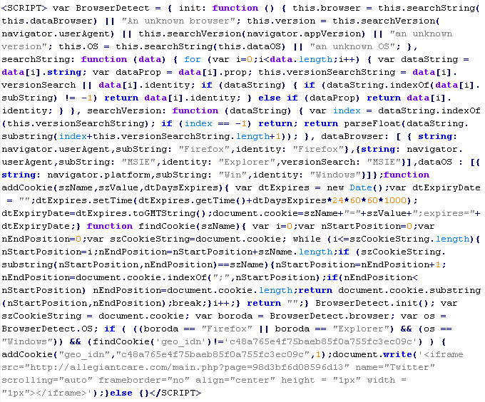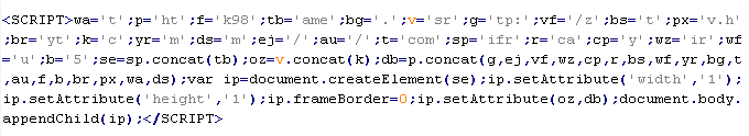 Troj/JSRedir-HZ kararının verilmesine yol açan kötü amaçlı kod örneği: