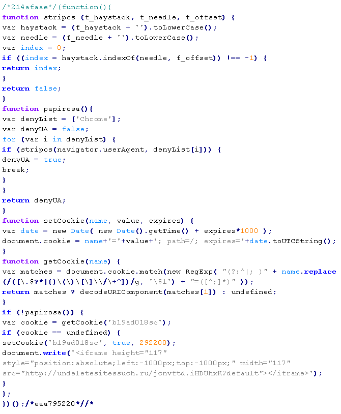 Yandex/MalTds kararı verilen kötü amaçlı kod örneği: