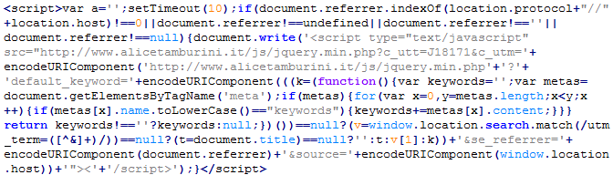 Troj/JSRedir-R kararı verilen kötü amaçlı kod örneği: